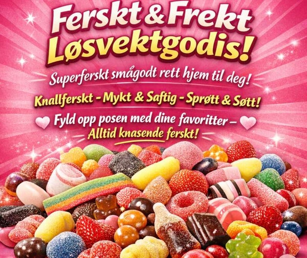 Oppdag ferskt, digg og helt uimotståelig løsvekt-godteri – håndplukket for deg som vil ha noe nytt og trendy i godteskåla! Her finner du alt fra sprø nyheter til klassiske favoritter, alltid fylt på med ferske, fargerike fristelser.
